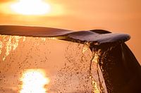In dit geval had ik dus mooi pech, de walvis zwom eigenlijk op slechts een paar meter van de boot en dus paste de staart en het goudkleurige water niet in z'n geheel in het frame. Aan de ene kant baalde ik enorm omdat het licht zo mooi was, maar toen ik de foto later bekeek was ik toch niet geheel ontevreden. Ik vind het zelf een soort arti foto met dat prachtige zonlicht, de details in de druppels die van de staart vallen en in het geheel is de staart nog zeer herkenbaar. Een gelukje bij een ongelukje dus ;)