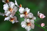 Verbascum phoeniceum Toorts bloemen zijn vaste winterharde planten. Sierlijke zacht roze kleine bloemetjes tegen de groene achtergrond.