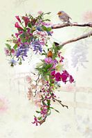 Orchidee, Clematis, etc. roodborstjes en ook insecten.
