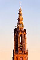 Top Onze lieve Vrouwetoren te Amersfoort tijdens zonsondergang.