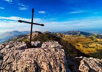 Bergpanorama in de bergen van Noord-Spanje met kruis op de top