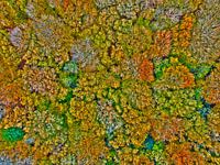 Topshot van bomen in een bos in de herfst in Nederland