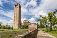 Op dit beeld zie je de landelijke omgeving van het eiland Torcello, met prominent in beeld de kerktoren van de basiliek. De kerk en de toren kunnen worden bezocht, vanuit de toren heb je een schitterend uitzicht over het eiland en de lagune!!!