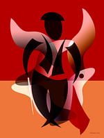 In de achtergrond zie je dan ook de kop van de stier met zijn gevaarlijke horens.