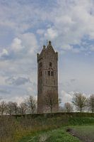 De mooie solitaire kerktoren van het kleine Firdgum, in het mooie Friesland. Mooie stapelwolken achter de middeleeuwse toren.