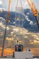 Op 23 juni 2022 is het torentje tijdens de zonsondergang op het gebouw geplaatst,…