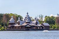 Deze artistieke constructie aan de overkant van het water kan ik niet onopgemerkt laten. Het lijkt op dit moment verlaten of niet in gebruik maar is waarschijnlijk een soort van recreatiegebouw. De foto is genomen te Brugelette een plaats in België in de provincie Henegouwen.