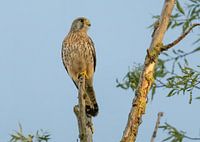 Ik zat al een tijdje gecamoufleerd aan de rand van een stuk bos bij het Azewijnse Broek, toen op een gegeven moment twee torenvalkjes mij in het vizier kregen, waarna ze herhaaldelijk duikvluchten op mij uitoefenden. Dit vond ik wel heel bijzonder, alleen al door het feit dat ik dit nog nooit had meegemaakt. Na een tijdje werden de "aanvallen" minder en ging een van de valkjes achter mij op een tak zitten uitrusten, te weten dit torenvalk vrouwtje. Daar heeft ze zeker een twintig tot dertig minuten gezeten alvorens weer het luchtruim te kiezen. Ze hebben mij daarna ook niet meer aangevallen en werd mijn aanwezigheid getolereerd.