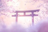 Een betoverende poort omringd door glinsterende kersenbloesems nodigt je uit om je onder te dompelen in een droomwereld. Het zachte licht en de delicate kleurschakeringen creëren een vredige sfeer die perfect is voor een creatieve oase op kantoor of een rustgevend accent in de slaapkamer. Een vleugje natuur en harmonie die inspiratie opwekt.