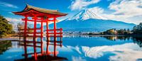 Koop dit landschapskunstwerk Torii voor de berg Fuji - Rustig landschap van Poster Art Shop als print op canvas, aluminium dibond, (ingelijste) fotoprint, behang en ArtFrame. Voor jou op maat geprint in Fine-Art kwaliteit.