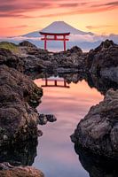 Torii voor de berg Fuji - zonsondergang van Poster Art Shop