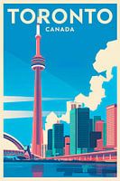 Een helderblauwe hemel omarmt de majestueuze skyline van Toronto, terwijl de CN Tower trots oprijst en betovert met zijn rode accent. De moderne wolkenkrabbers weerspiegelen het licht van het water en er hangt een sfeer van stedelijke flair. Dit beeld nodigt je uit om het kloppende hart van Canada te verkennen.