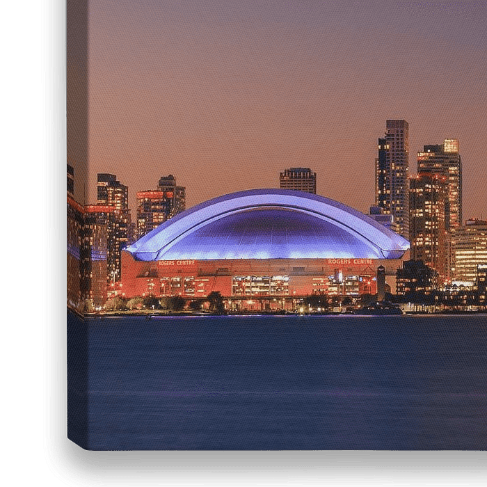 Na zonsondergang gezien vanaf de Toronto Islands in de avond als de lichten van de stad fonkelen is het uitzicht richting de stad en de skyline van Toronto met de CN Tower en Rogers Centre is werkelijk een must see.