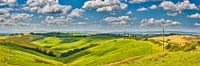 Een groot panorama beeld van een landschap in Toscane. Toscane, het schilderachtige juweel van Italië. Betoverende landschappen strekken zich uit: glooiende heuvels bedekt met wijngaarden en olijfbomen, cipressen die naar de hemel reiken. Charmante dorpjes nestelen zich tussen de groene valleien. Een adembenemend panorama wacht op ontdekkers, doordrenkt van tijdloze schoonheid en artistieke inspiratie. Het is hier een groot XXL bestand dus eventueel zelf aan te passen.