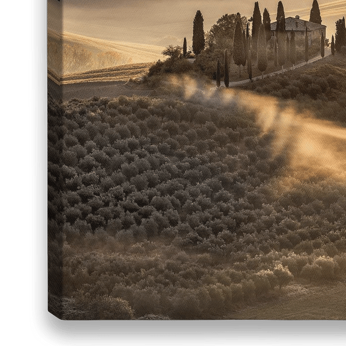 Koop dit landschapskunstwerk Toscaans landschap met boerderij en prachtige ochtendnevel van Voss fotografie als print op canvas, aluminium dibond, (ingelijste) fotoprint, behang en ArtFrame. Voor jou op maat geprint in Fine-Art kwaliteit.