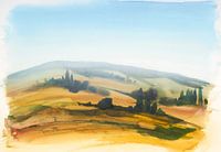 Aquarel van een idyllisch landelijk Toscaans landschap in de zomer