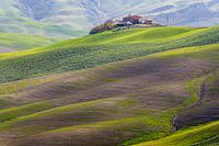 Landschapsfoto van opvallende glooiingen van Toscaanse velden