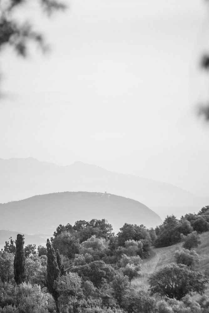 Landschap, Toscane, Italiaans, Heuvels, bergen, Bomen, Planten, Vegetatie, Italië, zwart/wit