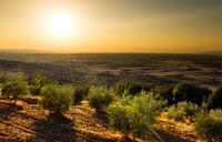 Zonsondergang in Toscane, Italie, gezien vanaf een heuvel met olijfbomen in de zomer