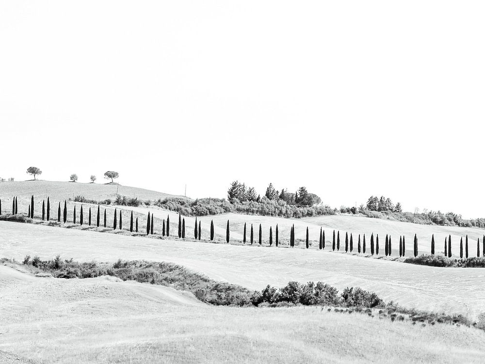 In zwart-wit verdiept elke schaduw de poëzie van dit land - de silhouetten van bomen, de texturen van ruïnes, de eindeloze horizon. Het is een plek waar schoonheid eeuwig aanvoelt, gevangen in licht en vorm.