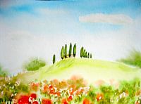 Aquarell- Toskanalandschaft