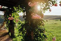 Een uurtje voor de zonsondergang op deze prachtige locatie in Toscane. De zon schijnt door de bloemen en dat kan niet mooier worden vastgelegd dan met een analoge camera voor super veel details.