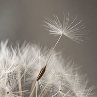 Koop de foto Tot ziens! Een pluisje verlaat de paardenbloem van Marjolijn van den Berg op canvas, aluminium dibond, (ingelijste) fotoprint, behang en ArtFrame, op maat geprint in Fine-Art kwaliteit.