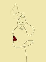Een extra accent licht op haar rode lippen om nog meer de aandacht naar het werk te trekken.