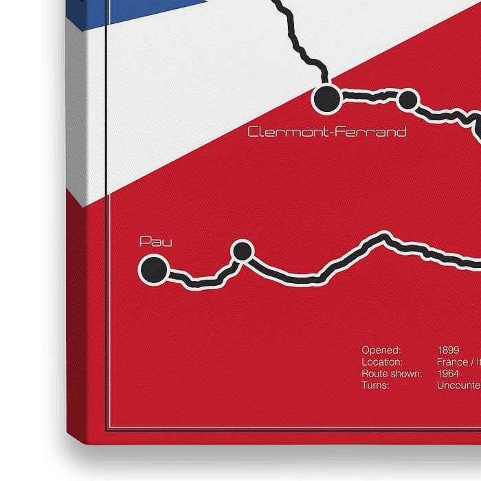 Afdrukken van een reeks legendarische motorsportcircuits voor de liefhebber van klassieke races.