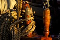 Houten trossen, op een zeilschip in een haven (Denemarken)