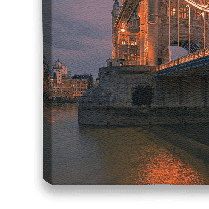 Een zonsondergang bij de beroemde Londen Tower Bridge over de rivier de Theems, Londen, Engeland.