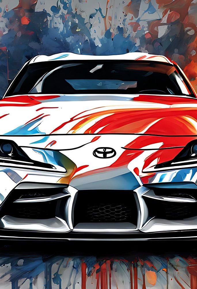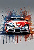 De iconische toyota supra, in kunst bewerkt door AI naar een splash art achtige kunstwerk
