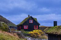 Traditioneel huis in het dorp Kirkjubøur op de Faeröer.