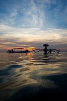 Traditionele Balinese boot (Jukung) bij zonsondergang op Bali Indonesië