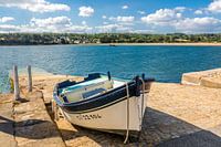 Traditionele Bretonse houten boot in de kleine haven van Le Fret, schiereiland Crozon, Finistère, Bretagne, Frankrijk