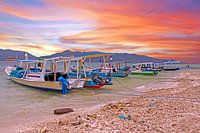 Traditionele boten bij Gili Meno in Indonesie met zonsondergang