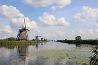 Traditionele molens op de kinderdijk op een mooie zomerse dag.