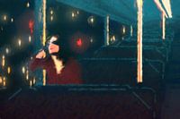Training Home III is het derde deel van een serie van drie werken met drie verschillende onderwerpen. In deel III kijkt een mooie jonge vrouw naar de voorbij rasende stad door het raam van de metro.