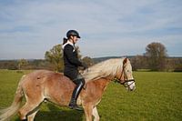 Koop de foto Training met de lichtbruine Haflinger met beige manen van Babetts Bildergalerie op canvas, aluminium dibond, (ingelijste) fotoprint, behang en ArtFrame, op maat geprint in Fine-Art kwaliteit.