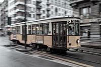 Openbaar vervoer in het buitenland heeft toch altijd een andere sfeer. De beweging in de foto met de scherpte aan de voorkant geeft een heerlijk stads karakter aan de drukte van Milaan...