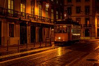 Op weg naar ons restaurant zag ik in de verlaten straten van Lissabon deze typische Portugese tram aankomen.