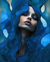 Abstract portret in blauw tinten.