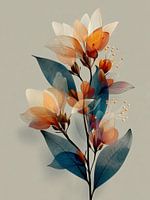 De kleurcompositie is bijzonder harmonieus: De warme oranje en amberkleurige tinten van de bloemen vormen een prachtig contrast met de koele blauwe en turquoise tinten van de bladeren. Deze kleurencombinatie creëert een levendige spanning en laat de hele foto levendig lijken. De tere meeldraden met hun oranjekleurige stuifmeel zorgen voor kleine maar belangrijke accenten.