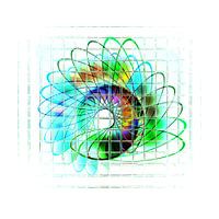 Decoratief beeld digitaal gegenereerd uit kleuren, vormen en licht. Het derde beeld uit een serie van vijf transparante spiralen.