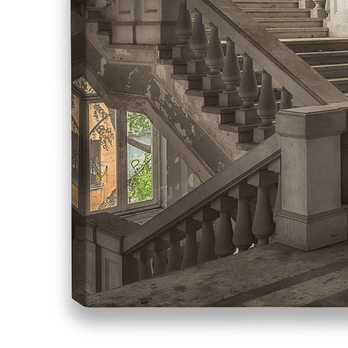 Dit is een trap ergens in Italie in een verlaten ziekenhuis. Dit ziekenhuis is gebouwd in de 19e eeuw voor 700 patiënten maar in de slechte tijden zaten hier tot over de 1500 patiënten U kunt zich vast voorstellen dat dit geen fijne plaats is geweest hoe mooi de trap ook is en de lichtinval... Een groot deel van het ziekenhuis is gesloten maar er is ook nog steeds een deel tot de dag van vandaag ingebruik.