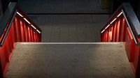 Trap met verlichting in een woongebouw in Maagdenburg in Duitsland