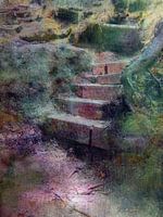 Digital Art fotografie en textuur...trappen in het bos dromerig en melancholiek. Straalt rust en eenzaamheid uit.