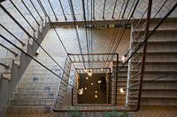 Het originele trappenhuis in Hotel 'De Zeevaartschool' in Vlissingen, Nederland. Behalve de verlichtingsarmaturen is er niets veranderd. Dit hotel was vroeger een maritiem instituut waar mijn vader zijn opleiding genoot.