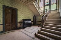 Geen alledaagse foto van een gang in een verlaten villa. Een piano blijft toch een van de stukken die achterblijven als de woning ter verval raakt.