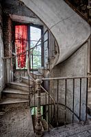 Deze trap bevind zich in chateau secession in Frankrijk. Het gordijn heeft zijn goede dagen al een tijdje achter de rug.